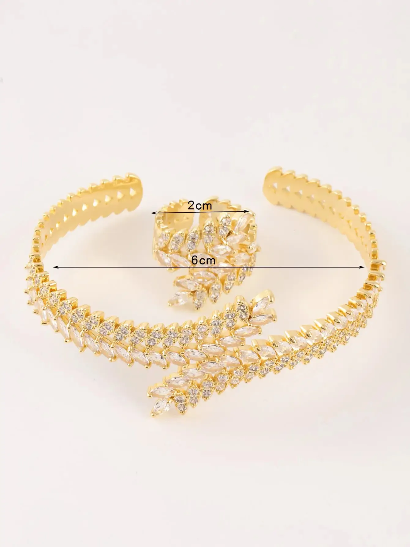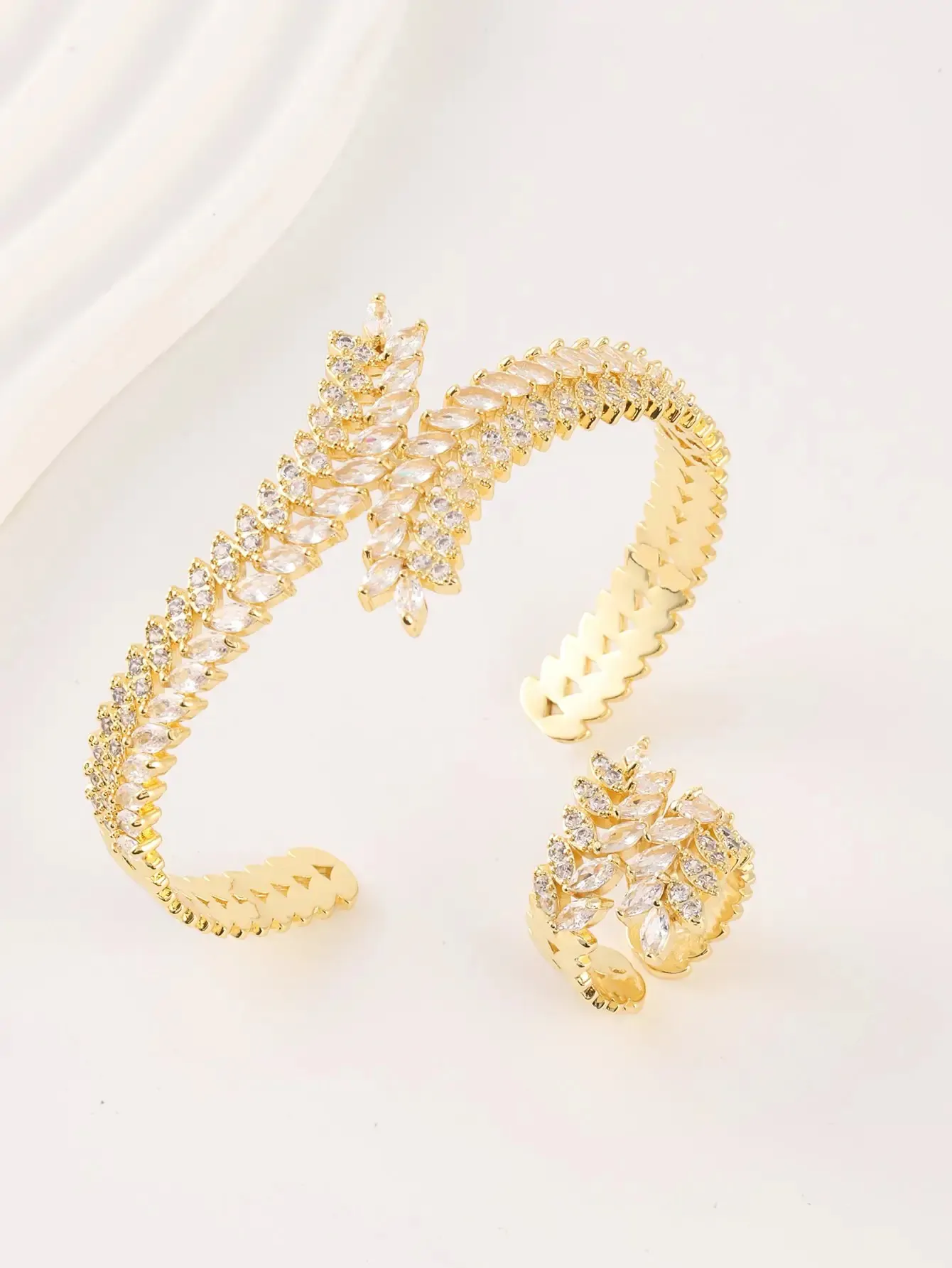 مجموعة مجوهرات القمح – خاتم وسوار وأذن قابلة للتعديل