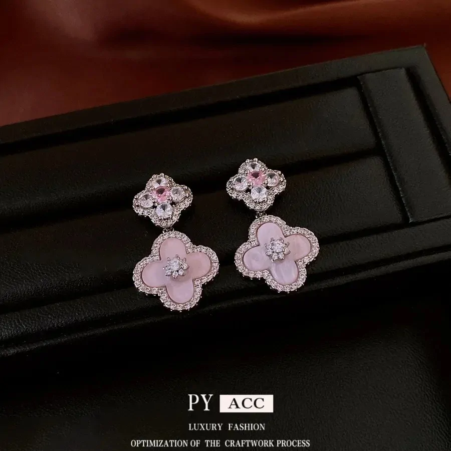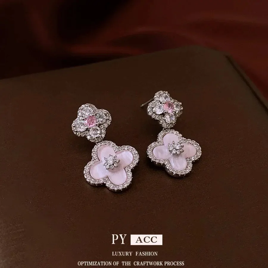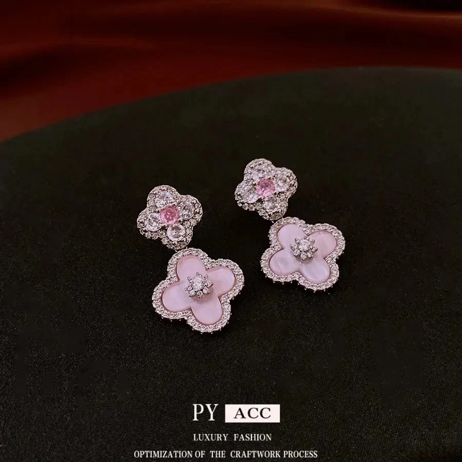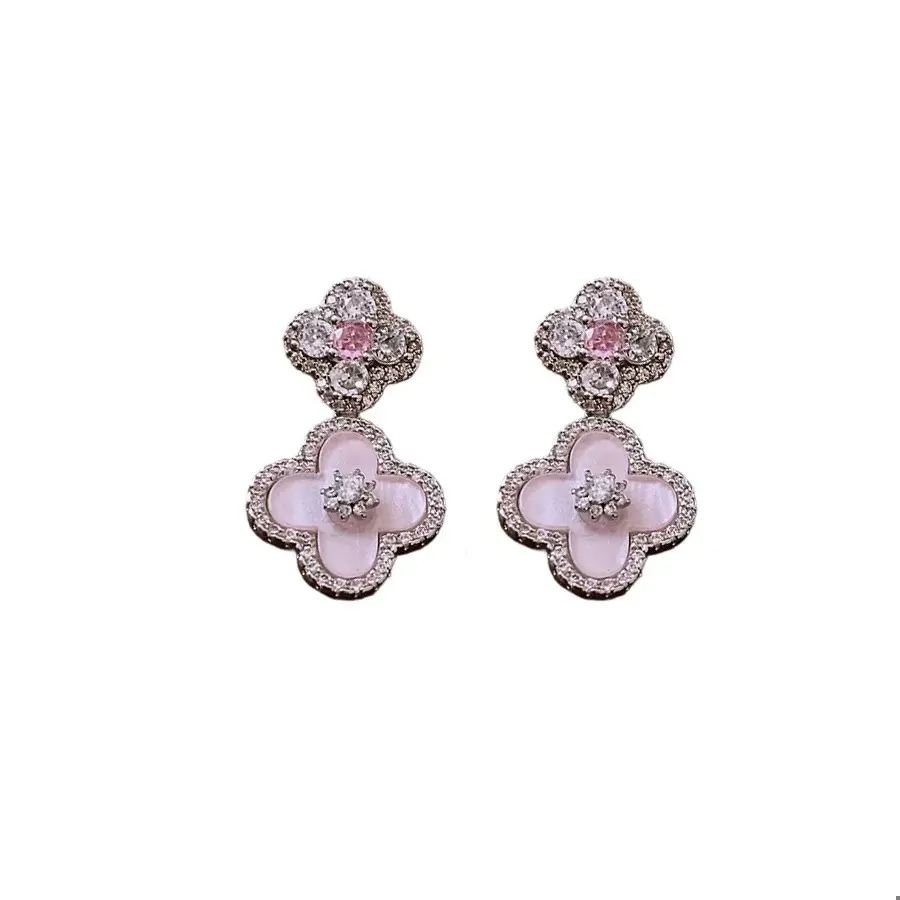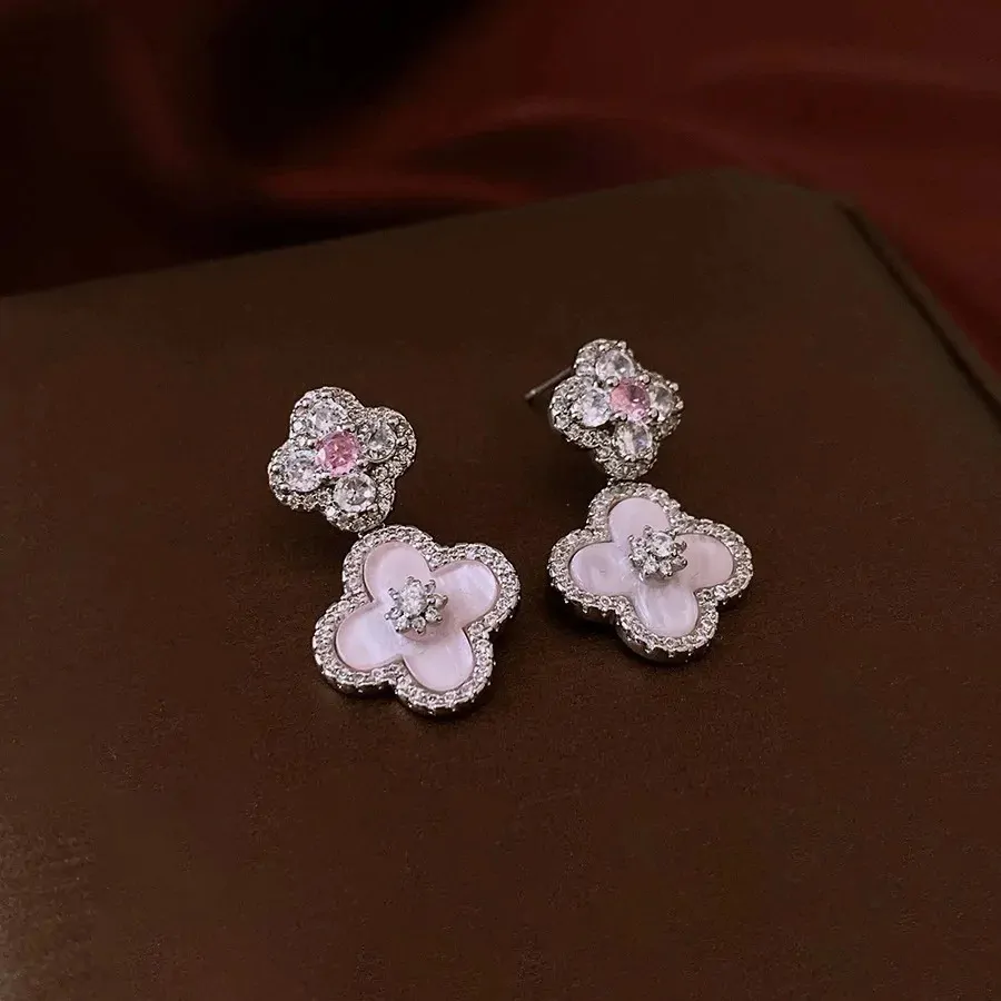أقراط زهرة الزركون واللؤلؤ – موضة كورية فاخرة